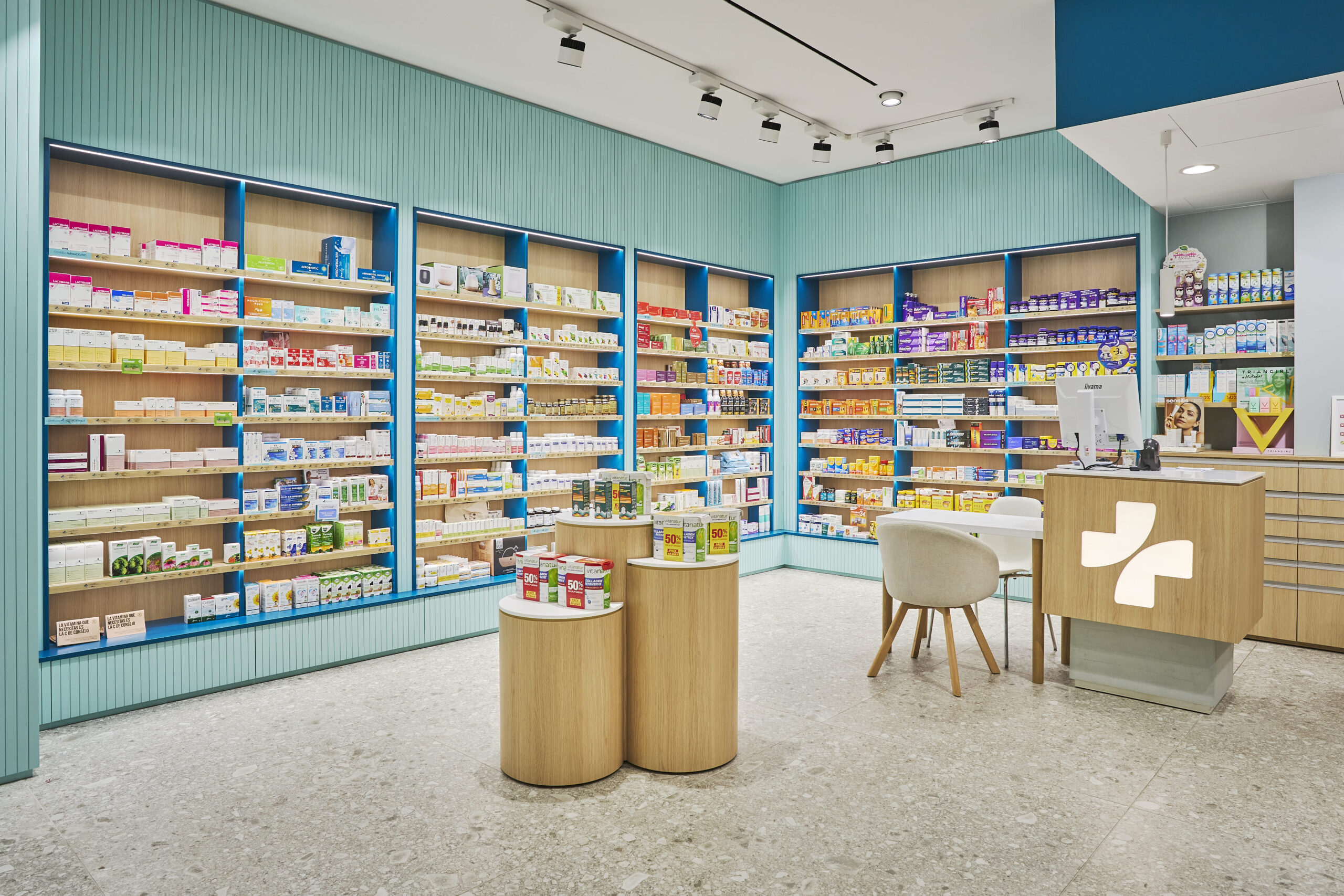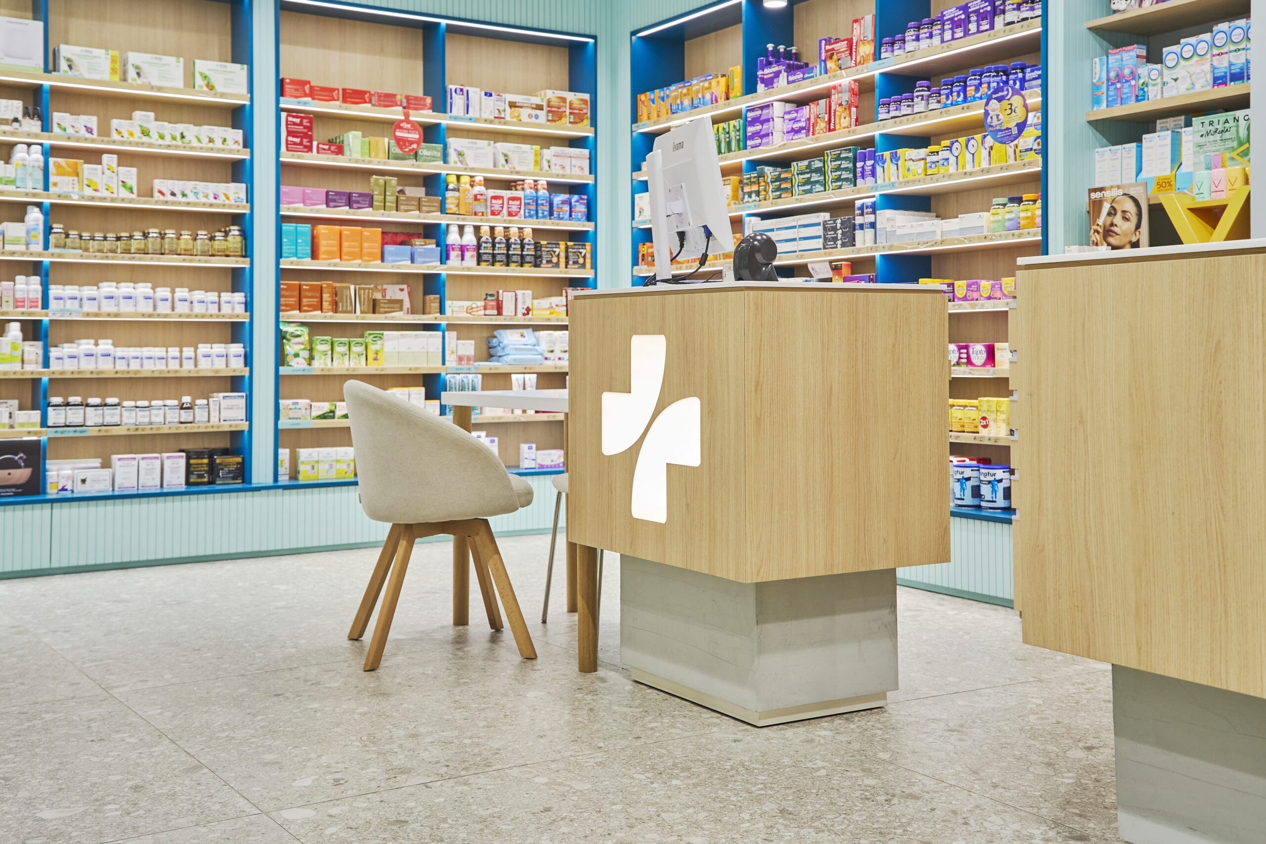 El projecte de reforma de la Farmàcia Arqué neix amb la voluntat d’actualitzar la seva imatge sense perdre el caràcter de proximitat que la defineix. L’espai s’ha reorganitzat per millorar la circulació i oferir una experiència de compra més clara i agradable, amb una aposta per materials naturals i una il·luminació càlida que transmet confiança i benestar.